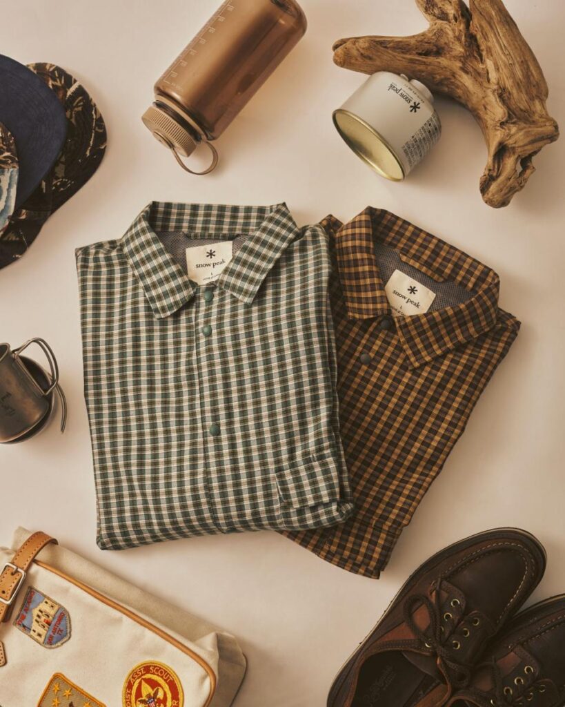 アウトドア文脈で親しまれてきたチェック柄を、あえて小柄に再編集し、都会的なムードを注入した。ブラウンはトラッドに、グリーンはSSらしく軽やかに。