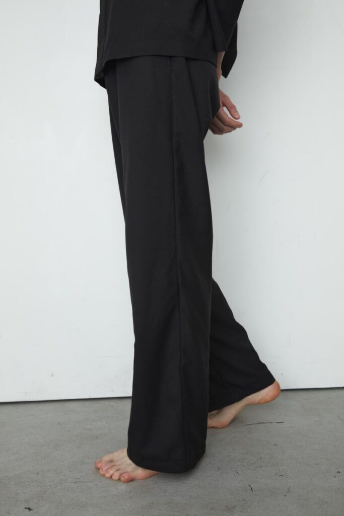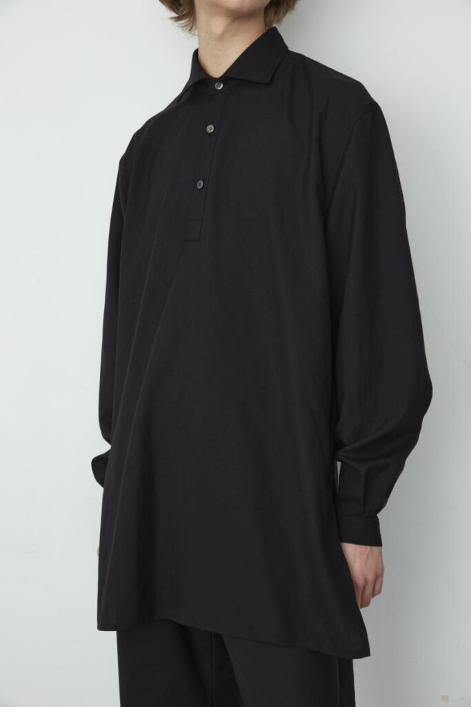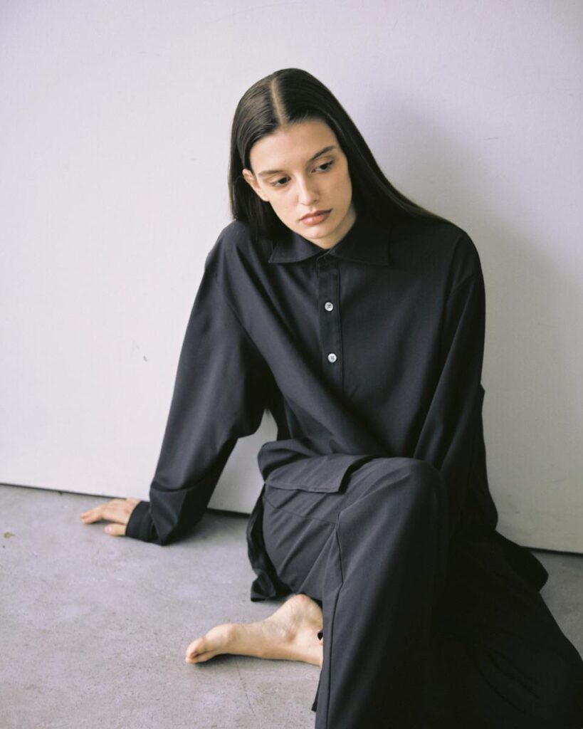 デビューコレクションでは、ノーカラージャケットシャツ(4万3000円)、スリーピングシャツ(3万2000円)、イージーパンツ(3万3000円)の全3型を展開する。身体の動きに自然に寄り添う柔らかな落ち感と、日常のさまざまなシーンに馴染む質感が特徴で、カジュアルにもドレッシーにも振れすぎない、静かな日常着として仕上げた。