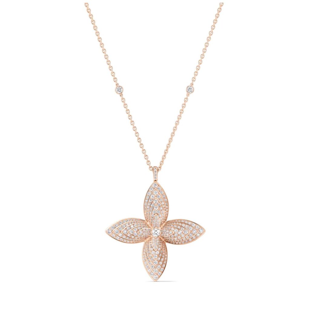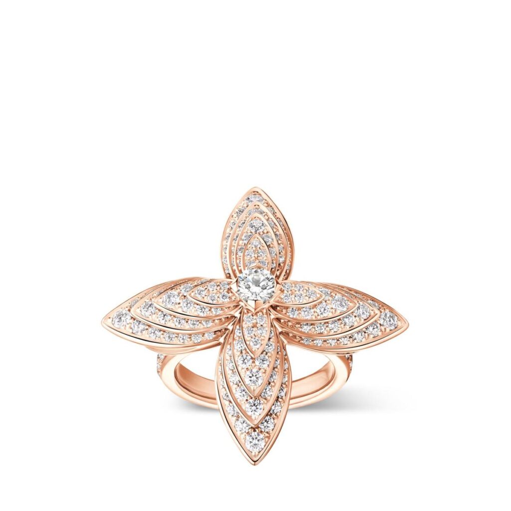 新たなエスプリが吹き込まれた「イディール ブロッサム」は、これまでにないハイジュエリーのクリエーションの新章を展開。どのジュエリーピースも、ルイ・ヴィトンのモノグラム・フラワーが時を経て変遷するストーリーを紡ぎ、新しいエッセンシャルとなるジュエリーの独創的な物語が、プレシャスなパウダーピンクのメタルやジェムストーンに刻まれます。
