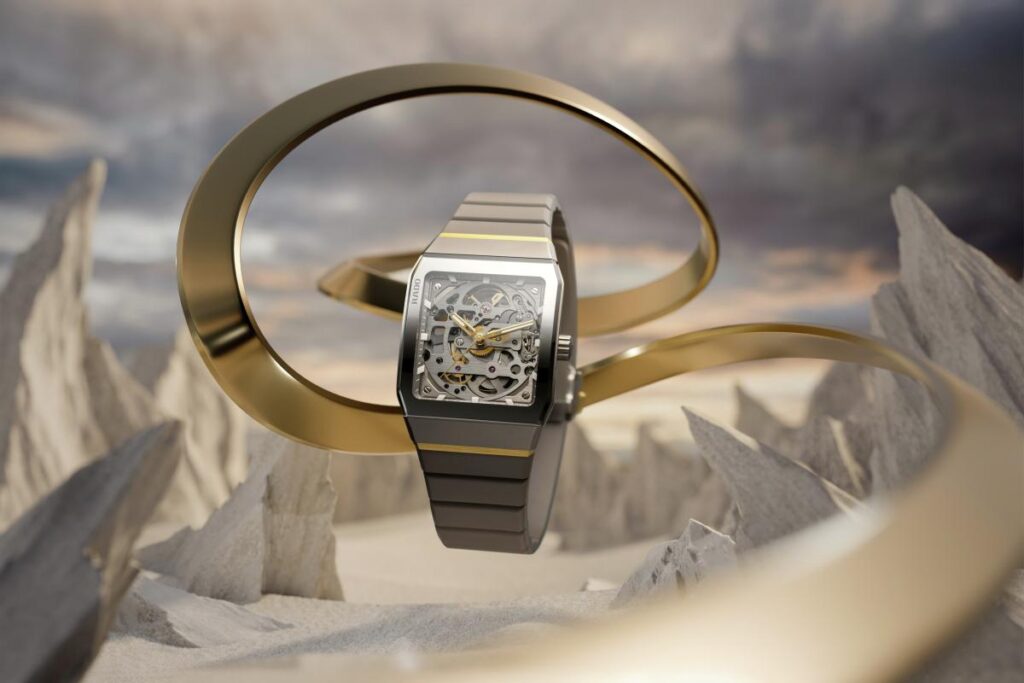 R808キャリバー自動巻ムーブメントの細部まで余すところなく眺められる構造は、人間工学に基づいたスタイルアイコンから、人間の身体がもつ複雑で精緻なメカニズムを象徴する存在へと昇華させたのです。