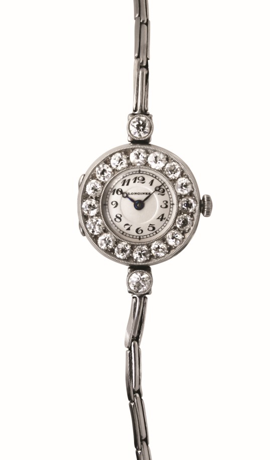 <右:通常ロンジン ミュージアム(サンティミエ)にて展示されるロンジンの現存最古の腕時計(1902年)>
