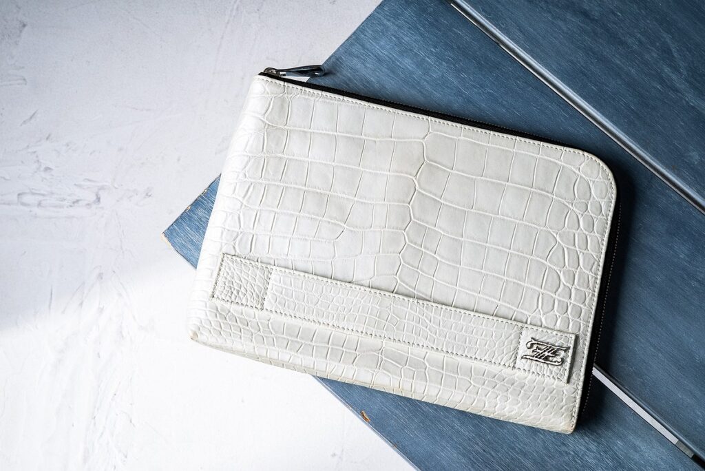 シャムクロコダイル クラッチバッグ。タテ20cm×ヨコ27.5cm×奥2.5cm。