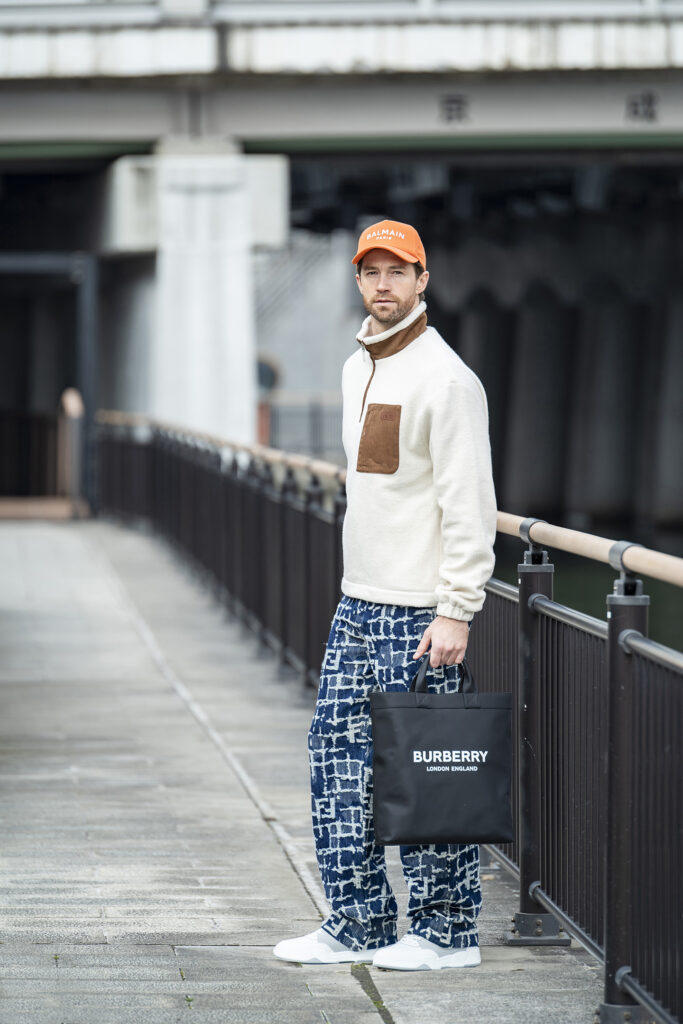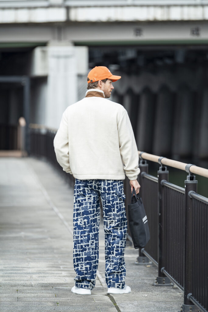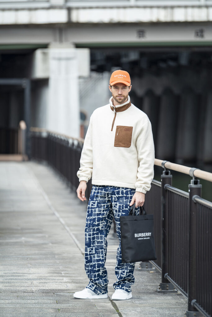軽快な淡色フリースに濃紺のFF刺繍デニムをぶつけて奥行きを作った着回しスタイル。アイテムそのものはどちらも定番ですが、しっかり個性を与えたデザインの選択に大人の“ずるさ”が光ります。キャップとスニーカーでラフさをキープしつつ、全体はあくまで上品なテイストで。気楽なのに手抜きに見えない、ラグジュアリーかつカジュアルな着こなしだから、ちょっとした打ち合わせが終わったら、そのまま彼女とデート……なんて春の午後にもぴったりですよ。