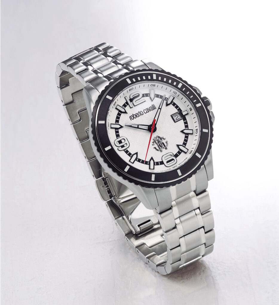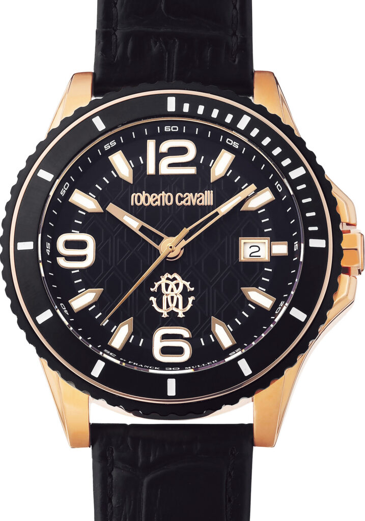 派手さを極力抑えて質感をアピールするとなると、ロベルト カヴァリの腕時計はこうしたスタイルになるのかもしれない。