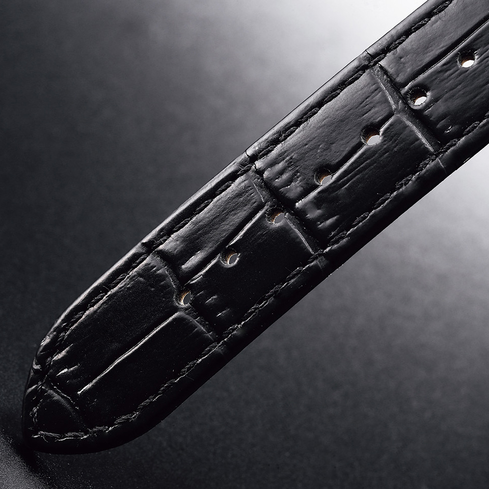 SS(RG加工)。ブラック文字盤。ブラック本革ベルト。