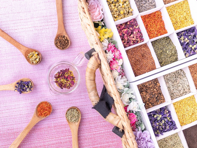 1.花びらビュッフェ(オリジナルハーブティー製作体験)