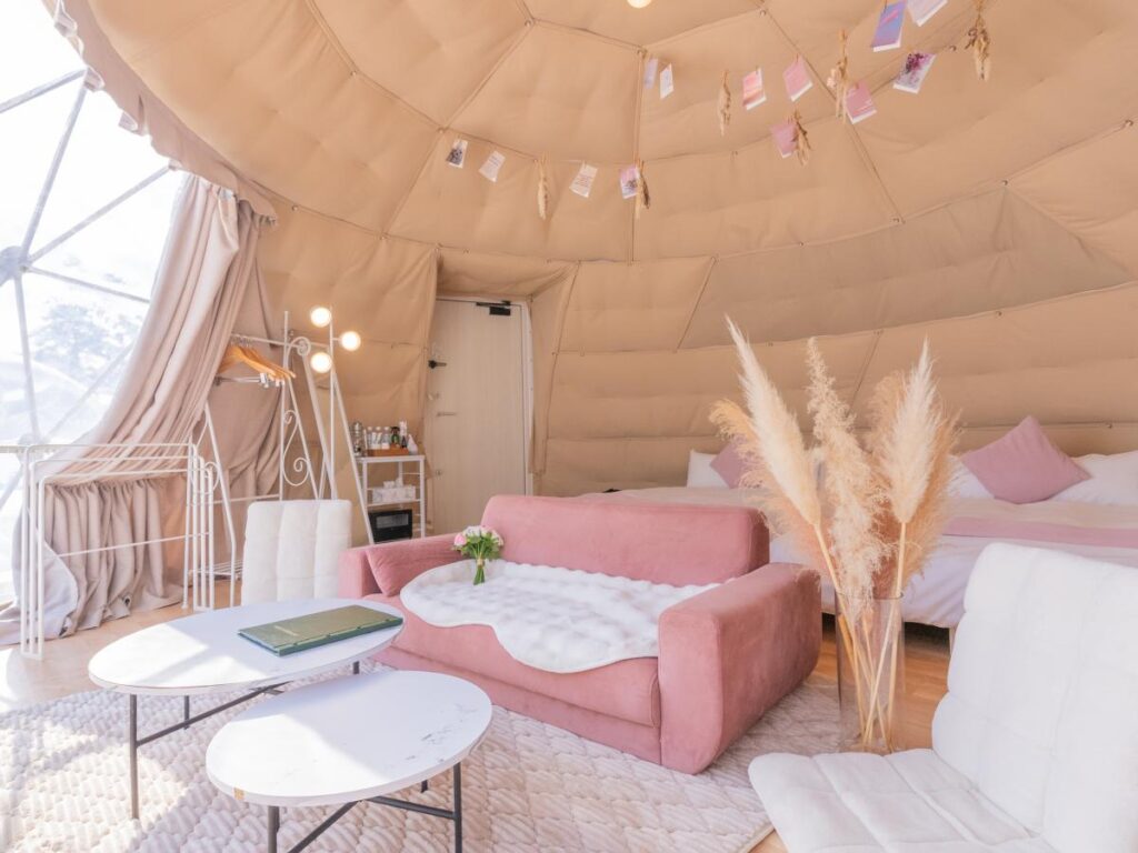 yamagata glam は、山形県村山市にある全8室のプライベートなグランピング施設です。最上川のすぐ横に位置する絶好のロケーションで「山形の里山・農村の文化を体験する」をコンセプトに、最上川舟下りなど四季折々の体験アクティビティと山形の食材を盛り込んだお食事を提供しています。