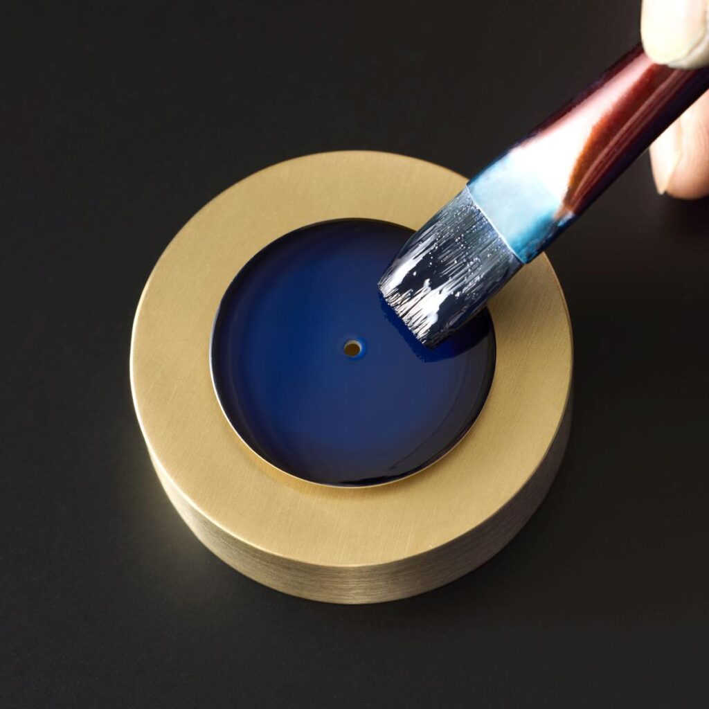 複数回にわたり、塗りと砥石による研ぎを繰り返し、最終工程では熟練の匠の指先の感覚でダイヤルを磨き上げることで、奥行きのある艶感や繊細なグラデーションを実現しています。