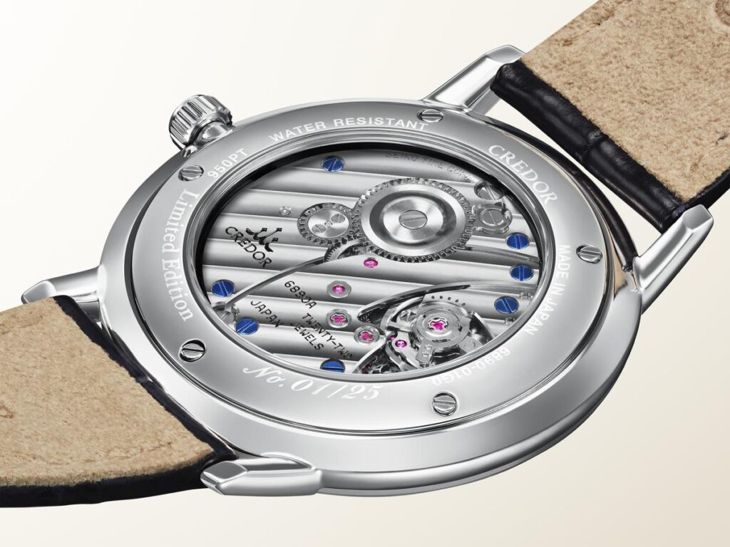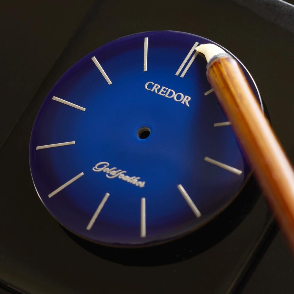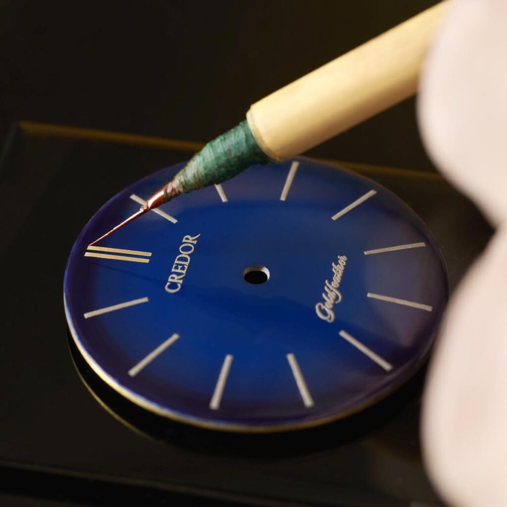 さらに、12か所のインデックスや「CREDOR」ロゴ、6時位置の「Goldfeather」は、全て高蒔絵(※1)で描いています。繊細かつ立体的な高蒔絵が生み出す陰影は、ダイヤルに奥行きと豊かな表情をもたらします。