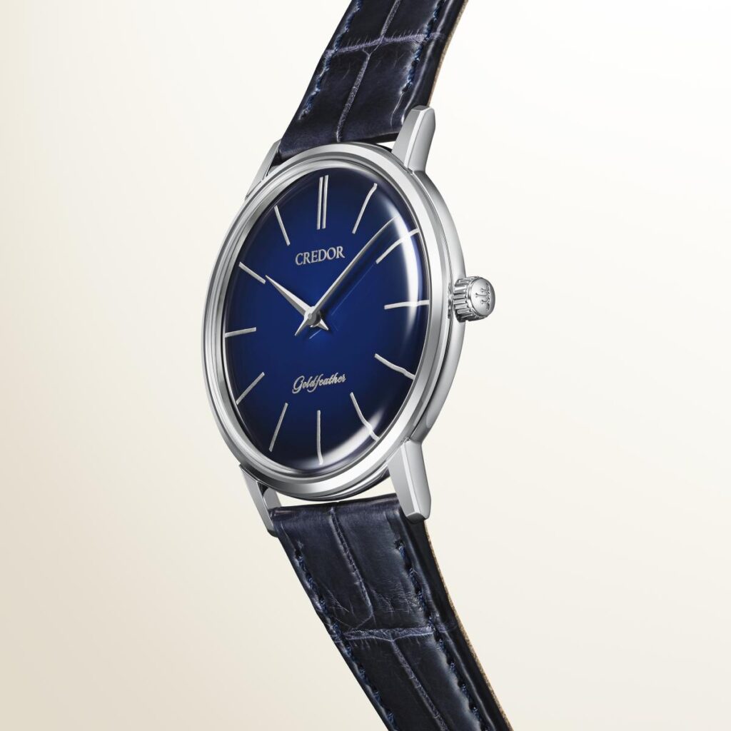 1960年に誕生した「セイコー ゴールドフェザー」は、セイコーの薄型メカニカルウオッチの先駆けであり、2023年に<クレドール>がその名を受け継ぎました。羽根のように「薄く」、「軽やかで」、「空気をはらみ」、「艶やかで」、「優美」であることをデザインコンセプトとし、現代のドレスウオッチとしてふさわしいスペックとデザインにアップデートしました。