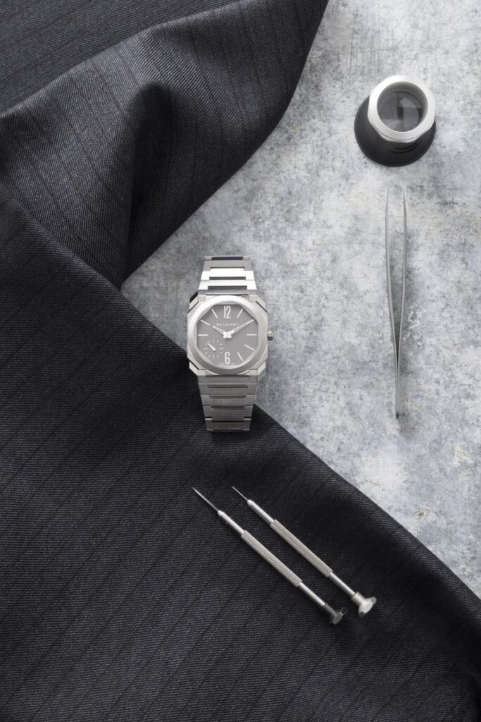 ふたつめはチタン製の仕上げのバリエーションです。チタン製の仕上げはサンドブラストとサテンポリッシュの魅力的な2種類を使い分け、それぞれがまったく異なる光の演出を生み出します。サテンポリッシュ仕上げは建築的なケースのエッジを強調する一方、サンドブラスト仕上げはコントラストと深みを出します。それぞれが異なる個性を持ち、洗練されたふたつの美学は、素材と仕上げの組み合わせという、「オクト フィニッシモ」におけるもっとも強力なデザインシグネチャーの要素を継承しています。