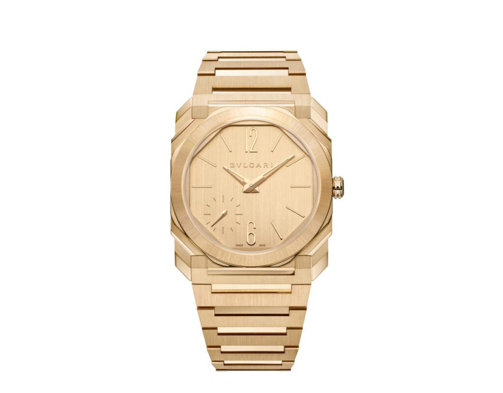 3つめのウォッチは、1884年の創業以来一貫してブルガリが取り扱ってきた素材であり、高貴な魅力にあふれたゴールドを採用しています。