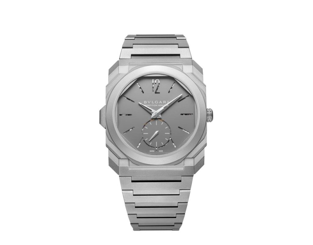 そして4つめは複雑機構の愛好家たちを魅了する「オクト フィニッシモ ミニッツリピーター」です。音響特性にも優れたサンドブラスト加工のチタン素材を使用し、自社製キャリバーBVL362を搭載します。