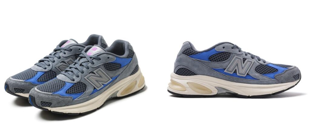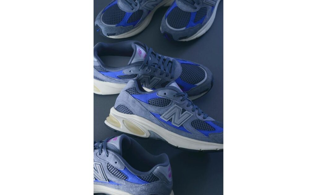 今回のモデルは、ニューバランスを象徴するレトロランニングシューズのシルエットを踏襲。ダークグレーのスエードとメッシュをベースに、ロイヤルブルーのパネルを配し、タンにはピンクからパープルへと移ろうグラデーションカラーを採用しています。控えめな洗練さの中に鮮やかな生命感を宿し、長年の友情の中で共有されてきた記憶や、言葉にしなくても通じ合う関係性を表現しています。