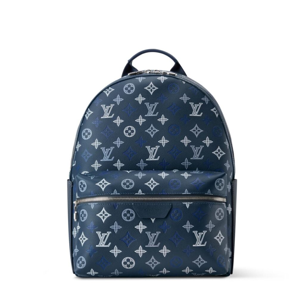 モノグラム・シャドウ レザーとマッチするテキスタイルライニングを施した「ディスカバリー・バックパック PM」。14インチのノートパソコンが収まるパッド入り内ポケットや、スマートフォンや財布、鍵が収納できる2つのフラットポケットを備えたバックパック。