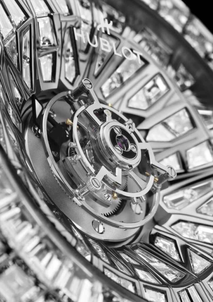 「ビッグ・バン インパクト ワンミリオン」の制作には、何百時間にも及ぶセッティング作業と、複雑なインパクトアーキテクチャーの中で完璧な整合性を実現するための、ダイヤモンドの形状とサイズの正確な組み合わせを導き出す広範な研究が重ねられました。ウブロが使用するダイヤモンドは、トップウェッセルトン(F~Gカラー)、VVSまたはVSクラリティの高品質なものを採用し、倫理的に調達されるとともに、トレーサビリティも確保されています。ウブロは、キンバリー・プロセスおよびレスポンシブル・ジュエリー・カウンシル(RJC)を遵守しています。