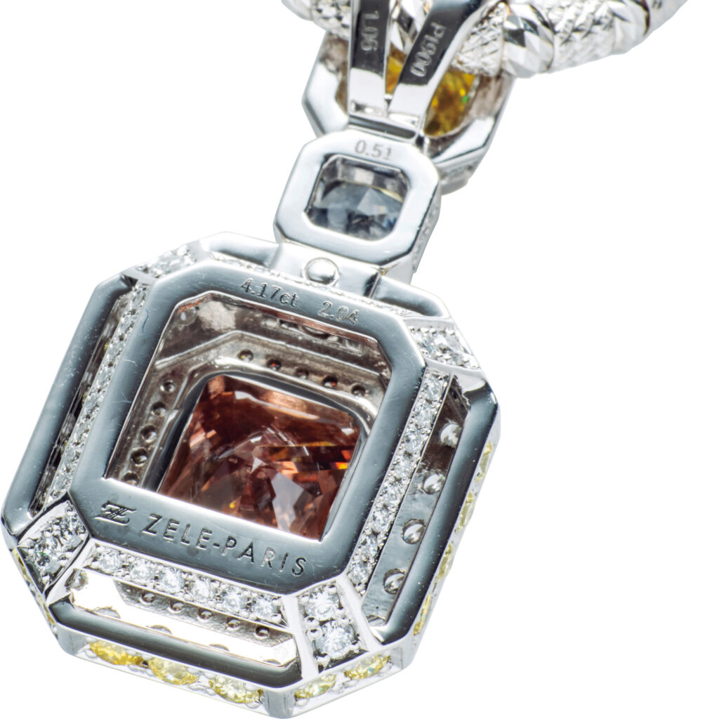 アーガイルのピンクダイヤモンドは全体の90%が0.2ct以下、アーガイルレポートがない0.07ct以下の小さいサイズが半分を占めるとのことで、この1.14ctものアーガイル産認定ピンクダイヤモンド「4PP/P1。FANCY VIVID PURPLISH PINK」の価値は莫大。コレクションにも投資としても絶対的価値があります。ピンクダイヤモンドをZELE-PARISとコラボしてくれるのはヴィー・エヌ・トレーディング有限会社。希少な宝石を取り扱う会社です。